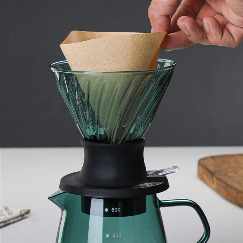 600ML Glass V60 Pour over Coffee Maker V Shape Drip Coffee Dripper and Filters Green