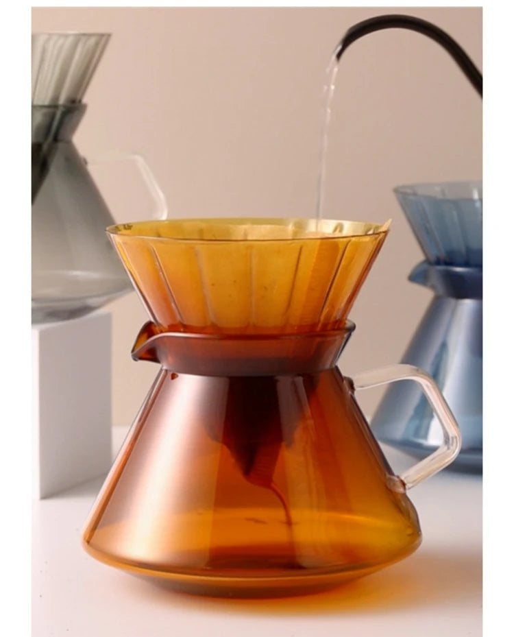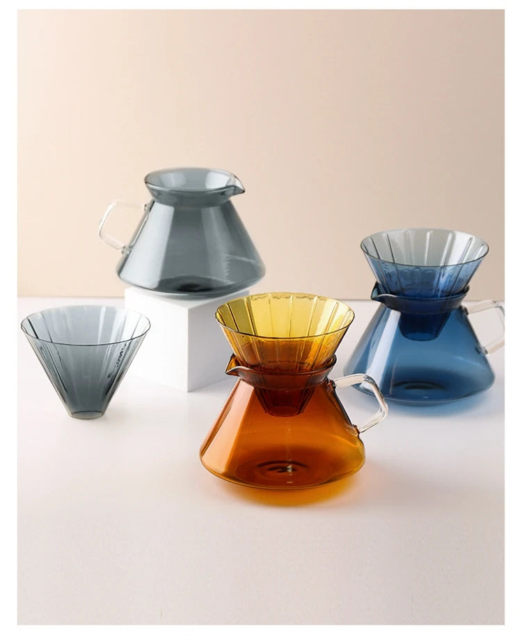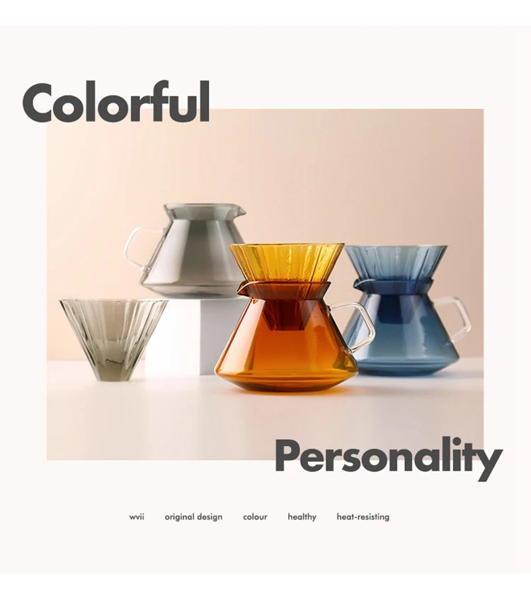 Elevate Your Coffee Ritual: Indulge in the art of pour-over brewing and elevate your coffee ritual with our premium coffee pot set. With its exquisite craftsmanship, stylish design, and unmatched functionality, our set is poised to become the centerpiece of your coffee brewing arsenal. Discover the true essence of coffee craftsmanship and embark on a journey of unparalleled flavor and aroma with our 600ML Colored Glass Drip Coffee Pot Set.