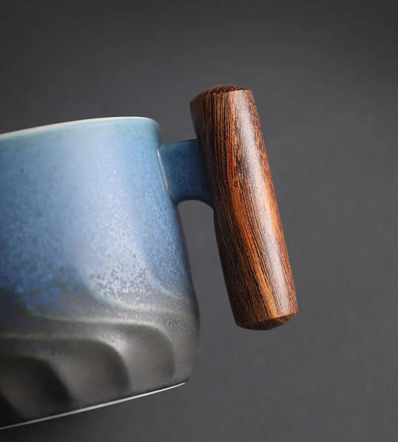 Introducing our exquisite Creative Coffee Cup, a unique addition to your coffee experience. Crafted from high-quality ceramic, this cup boasts a capacity of 70ml, perfect for savoring your favorite espresso or macchiato. Each cup is meticulously hand-painted and handmade, showcasing the artistry and dedication of our skilled artisans. The Wooden Handle Kiln Charged Exquisite pattern adds a touch of elegance to its irregular shape, making it a standout piece in any collection. Plus, its microwave and dishwasher-safe feature ensure convenience without compromising style. Elevate your coffee ritual with our Creative Coffee Cup today.