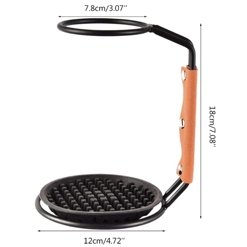 Featuring a classic cone-shaped coffee dripper, cherished by baristas worldwide for its ability to extract nuanced flavors from coffee grounds, this filter holder ensures a superior brewing experience with every pour. The sturdy metal arm, adorned with a luxurious leather handle, provides both stability and aesthetic appeal, while the included silicone drip tray offers a convenient and mess-free brewing solution.