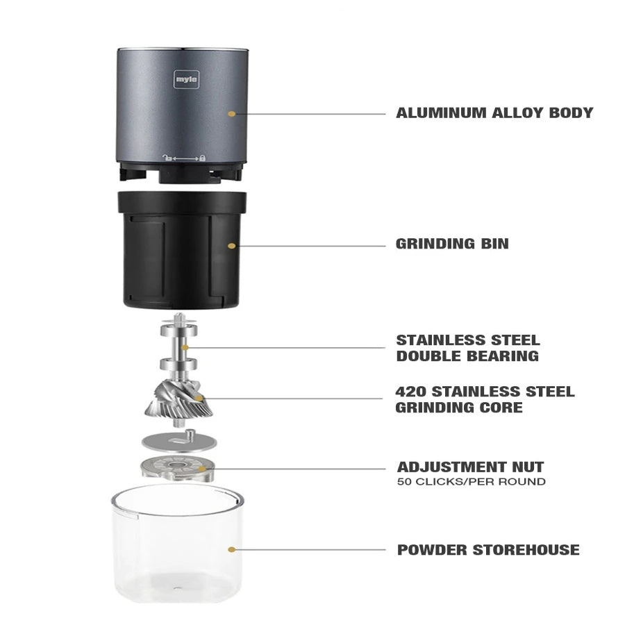 Electric Coffee Grinder New Upgrade Mini Portable Coffee Bean Grinder USB Charge Stainless Steel Espresso Spice Mill Grinders