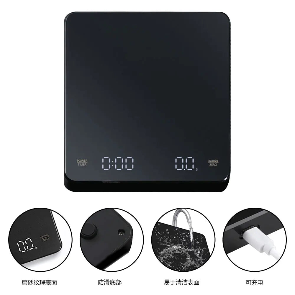 The coffee scale is equipped with a high-precision weighing sensor, with an accuracy of 0.1g/0.005oz and a maximum measurement value of 3KG/6.6lbs. A stable and accurate coffee scale ensures high quality and optimal taste, ensuring consistency in each cup of coffee.